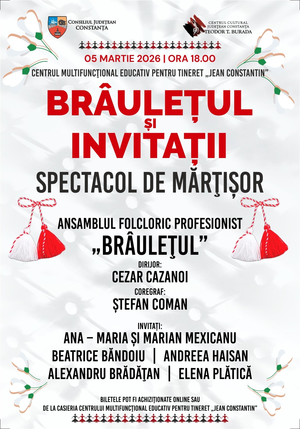 bilet onlineAnsamblul Folcloric Profesionist „Brâulețul” aduce pe scenă dans, muzică și tradiție, alături de invitați speciali, într-o seară plină de emoție și rafinament artistic.