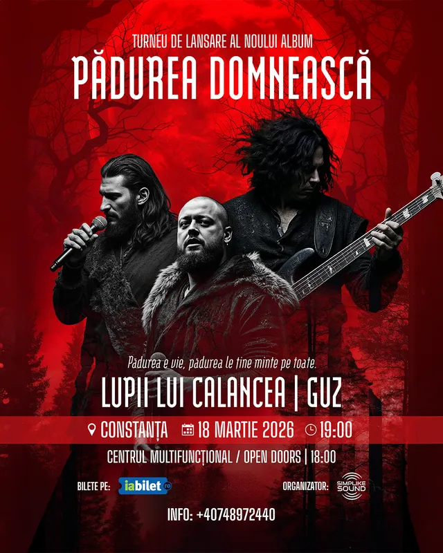 Pregătește-te pentru cel mai ambițios proiect muzical al anului! Lupii lui Calancea și Guz revin pe scenă într-o formulă explozivă pentru a lansa noul album: „Pădurea Domnească”. Nu este doar un concert, ci o experiență imersivă unde arhaicul întâlnește modernul. „Pădurea Domnească” este o odă adusă rădăcinilor, un spectacol ce îmbină forța rock-ului, profunzimea folclorului autentic și vibe-ul urban, totul sub semnătura inconfundabilă a lui Alex Calancea. De ce să nu ratezi acest eveniment: Premieră Absolută: Ascultă live piesele de pe noul album într-o producție vizuală și sonoră de excepție. Fuziune Unică: Energia „Lupilor” potențată de vocea inconfundabilă a lui Guz. Atmosferă ritualică: un show care te poartă din inima codrilor până pe marile scene urbane.